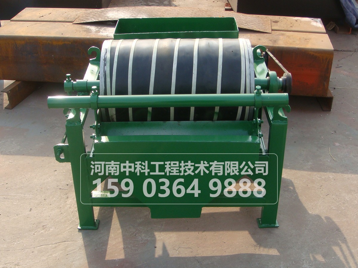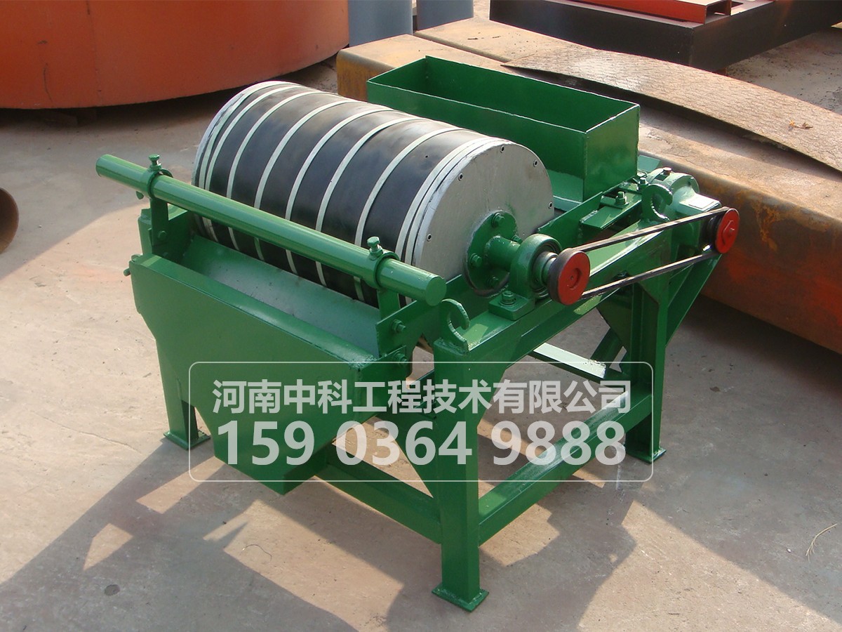礦漿經給礦箱流入槽體後,在給礦噴水(shuǐ)管的水流作用下,礦粒呈鬆(sōng)散狀態進入槽體的給礦區。在磁場的(de)作用,磁性礦(kuàng)粒發生(shēng)磁聚而形成“磁團”或“磁鏈”,“磁團”或“磁鏈”在礦漿中受磁力作用,向磁極運動,而被吸附在圓筒上。由於磁極的極性沿圓筒旋轉方向是交替排列(liè)的,並且在工作時固定不動,“磁團”或“磁(cí)鏈”在(zài)隨圓筒旋轉時,由於磁極交替而產生磁攪(jiǎo)拌現象,被夾雜在“磁團”或“磁鏈”中的脈石等非磁性礦物在翻動中脫落下來, 終被吸在圓筒表麵的“磁團”或“磁蓮(lián)”即是精礦。精礦隨圓筒轉到磁係邊緣磁(cí)力 弱處,在卸礦水管噴出的衝洗水流作用下被卸到精礦槽中。非磁性或弱(ruò)磁性礦物被(bèi)留在礦漿中隨礦漿排出槽外,即是尾礦